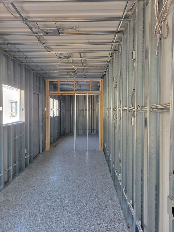 We built three 40 ft container control rooms for an energy company, engineered to withstand tough environments and frequent relocation. Outfitted with PVC walls, custom steel desks, and epoxy floors, these modular units are built for reliability. To make transport seamless, we designed a custom steel sled so they can move easily from site to site.